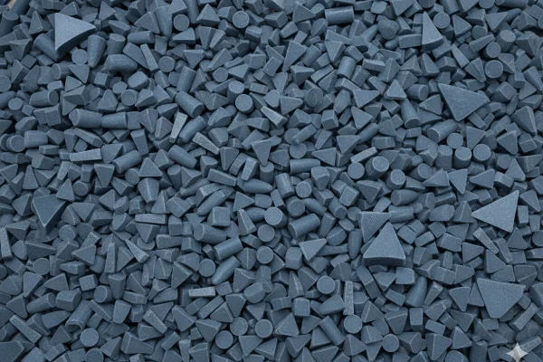 Apariencia: Forma sólida, color azul en diferentes formas y tamaños.