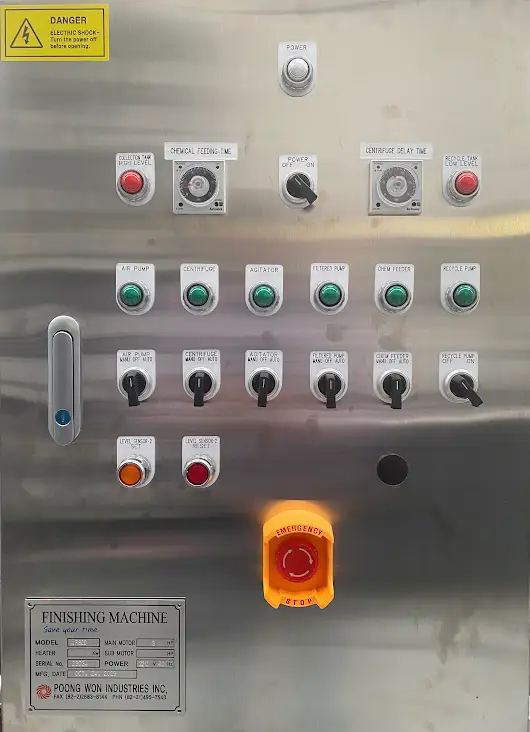 Equipado con sensores en la tina de recolección y el tanque de agua limpia, el WR-800 ofrece un funcionamiento automatizado y seguro, controlado mediante un panel intuitivo. Su bomba sumergible y retención de sólidos garantizan un proceso confiable, integrándose fácilmente a líneas de producción existentes.